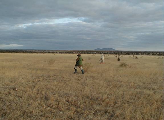 lodge and hunt several large private farms in the area for birds. Plains game