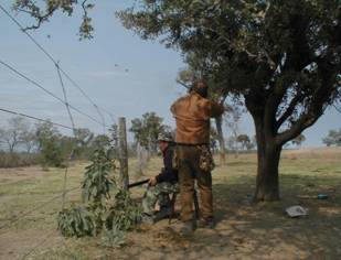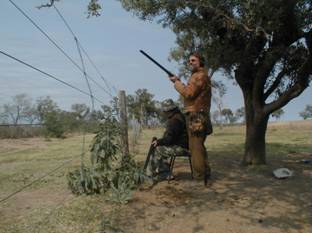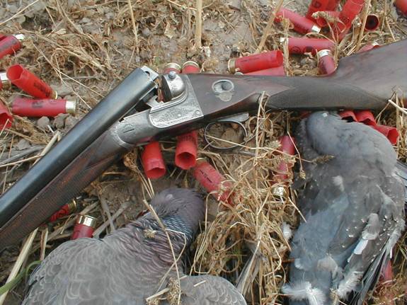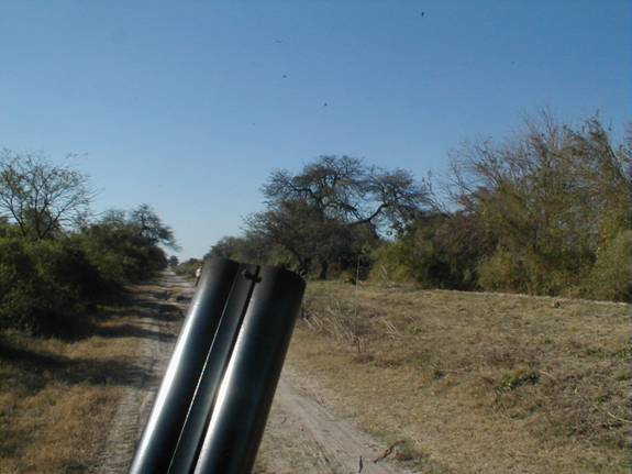 After taking a day off to visit Hector’s big game hunting camp some two hours away, the final day of hunting dawned clear and warm. Today was to be the day we put the Greeners through their paces. By now, my confidence with the guns had improved considerably and I trusted Luis not to shoot me in the derrier (now I understood fully why the original owner had commissioned those automatic safeties!). After the second partridge hunt in the morning, we moved to a spot known to offer fast action: a lane with an irrigation canal on one side, running through an area of thick bush that served as a dove dormitory.