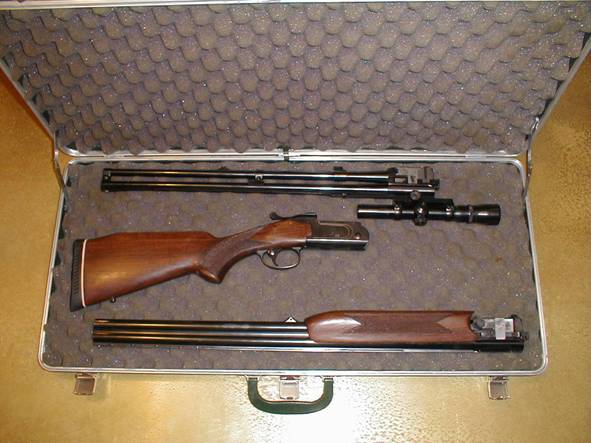 The author jumped at the opportunity to purchase just such a gun offered for sale on an internet classified site: a little-used, earlier 412 version, with a set of double rifle barrels in caliber 375 Winchester with the excellent Valmet quick-detachable scope mount and scope fitted, plus a spare set of 12 ga barrels choked modified and full, all in a hard case just large enough to accommodate all the bits while still small enough to fit in the lower compartment of a Boyt sportsman’s duffle bag. The price for the entire ensemble was $1500, about what it would cost to purchase a quality used bolt rifle and over/under shotgun. With rifle barrels mounted, the gun weighs a modest 9.5 lbs with scope and sling attached, quite substantial compared to the mountain rifles so popular today, but very handy in comparison to the typical 10 to 12 lb heavy double.