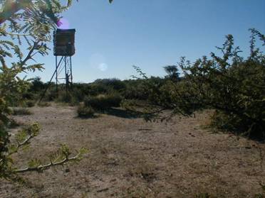 However, it was not the large variety or quantity of large mammals that impressed me most at Okatjuru. Having no rifle and not wanting to take game with a borrowed rifle, I requested the loan of a varmint rifle for the afternoon in the hopes of collecting a Jackal before the serious hunting began. Festus, who was my guide for afternoon, accompanied me to a nearby waterhole where we climbed into a comfortable “Hochsitz”, or high seat. From here, we had a commanding view of the waterhole and the surrounding area.